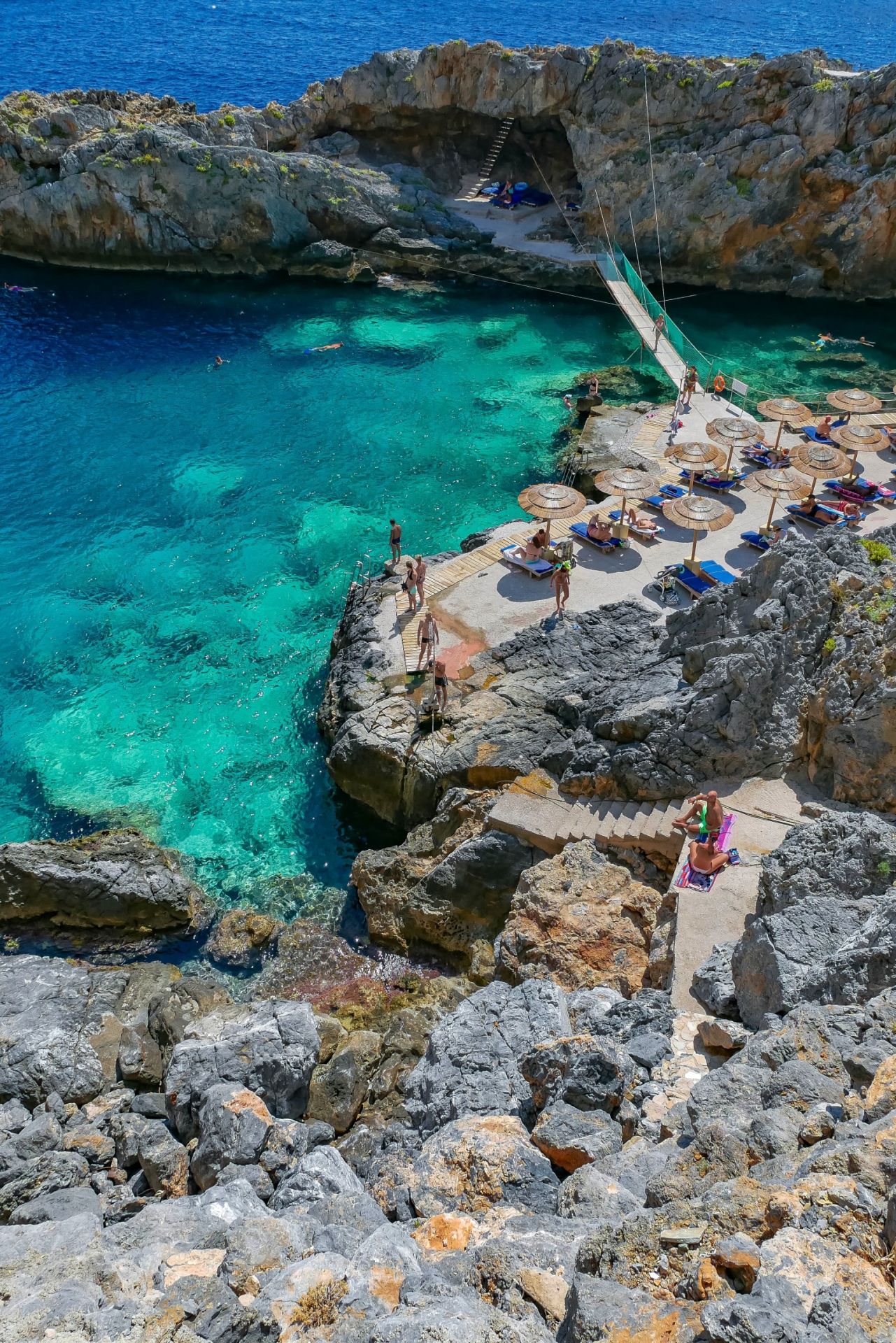 In this private tour the first stop is Spili village, located in the middle of the mountains, for a coffee break. Then guests will have the opportunity to visit a small gorge, Kourtaliotiko gorge, where after 5 minutes walking down the stairs they will reach Agios Nikolas chapel and the waterfalls. Next they will visit the most beautiful rocky beach, Karavos beach, where they will swim in crystal clear waters and jump from the cliffs. Finally they will have the lunch break with the spectacular view of the Libyan sea.